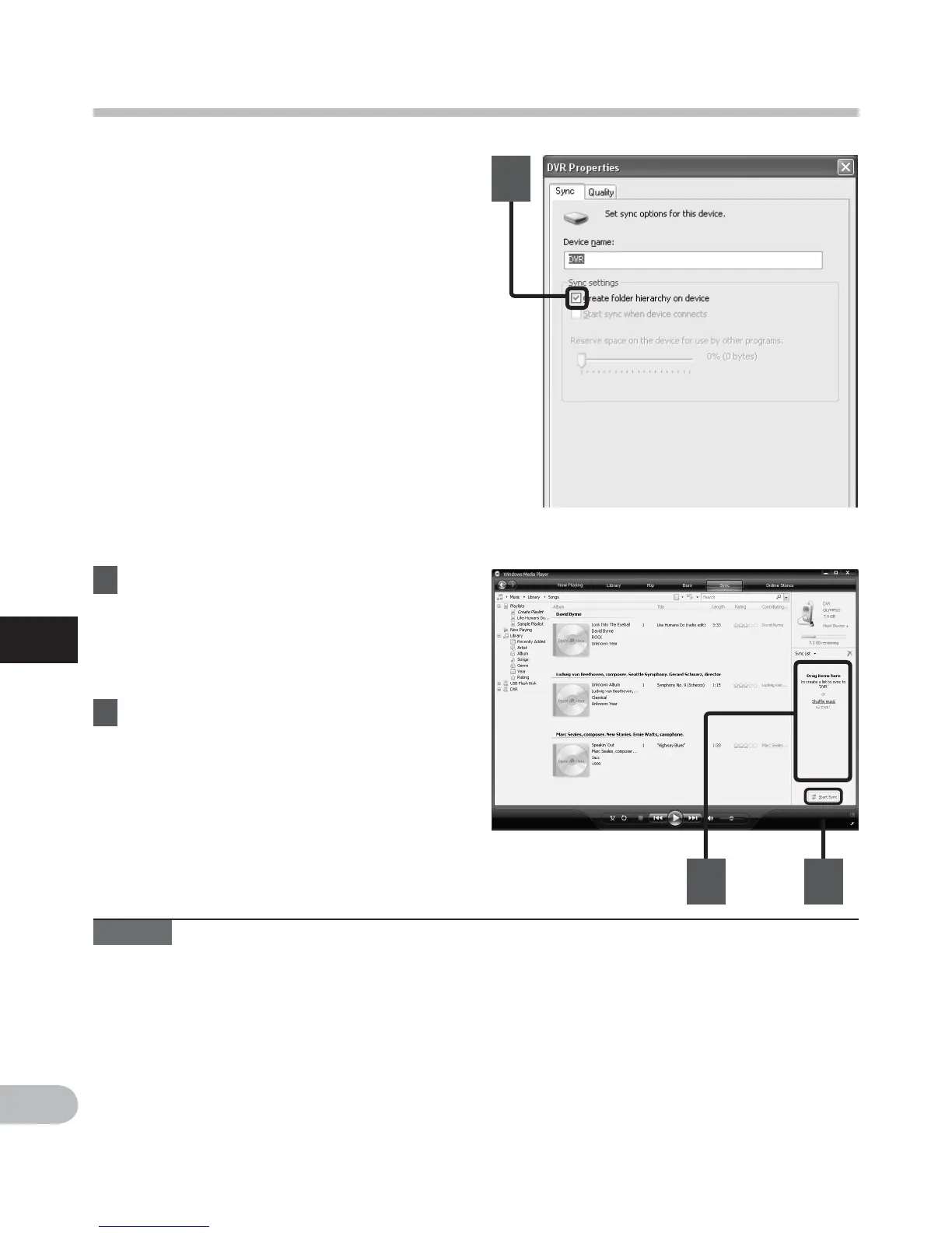 • To transfer the les by using Windows Media Player 9 or Windows Media Player 10, check
