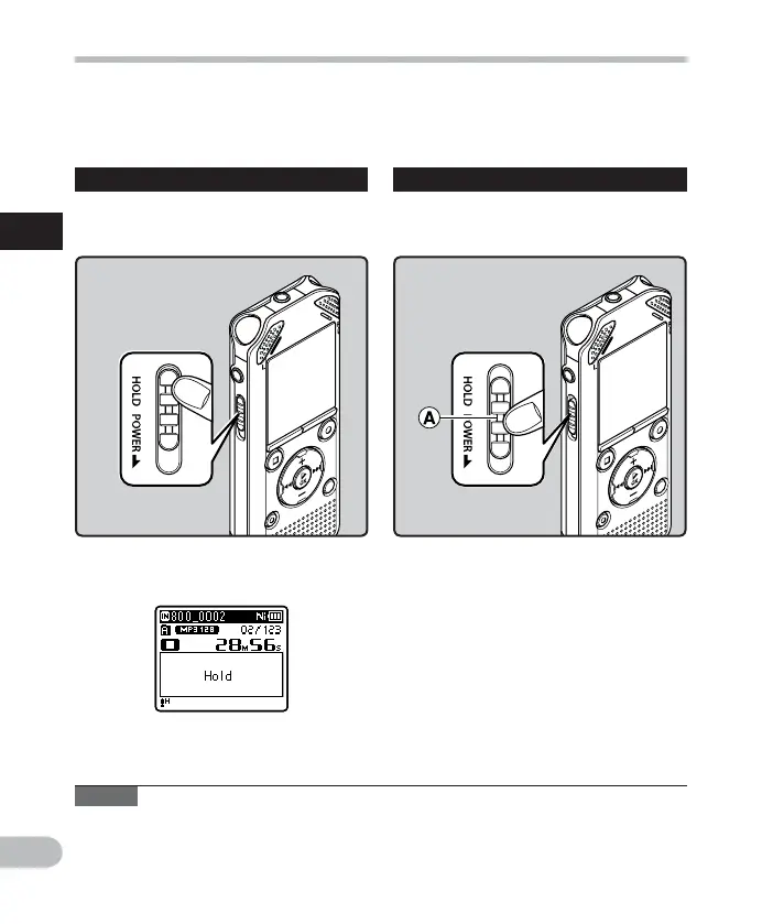 If you set the recorder to HOLD mode, the current settings will be preserved and all buttons
