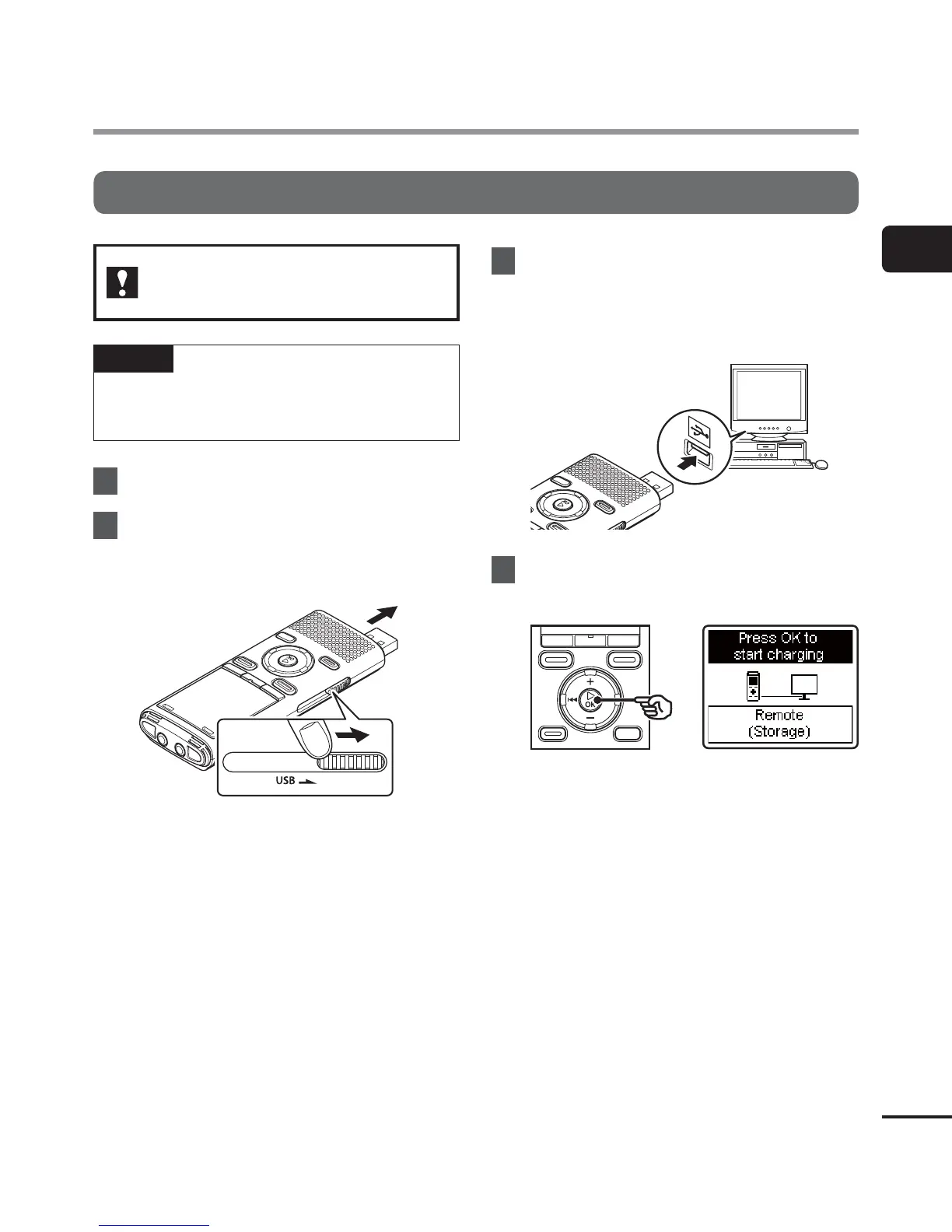 Charging the battery by connecting to a PC’s USB connector