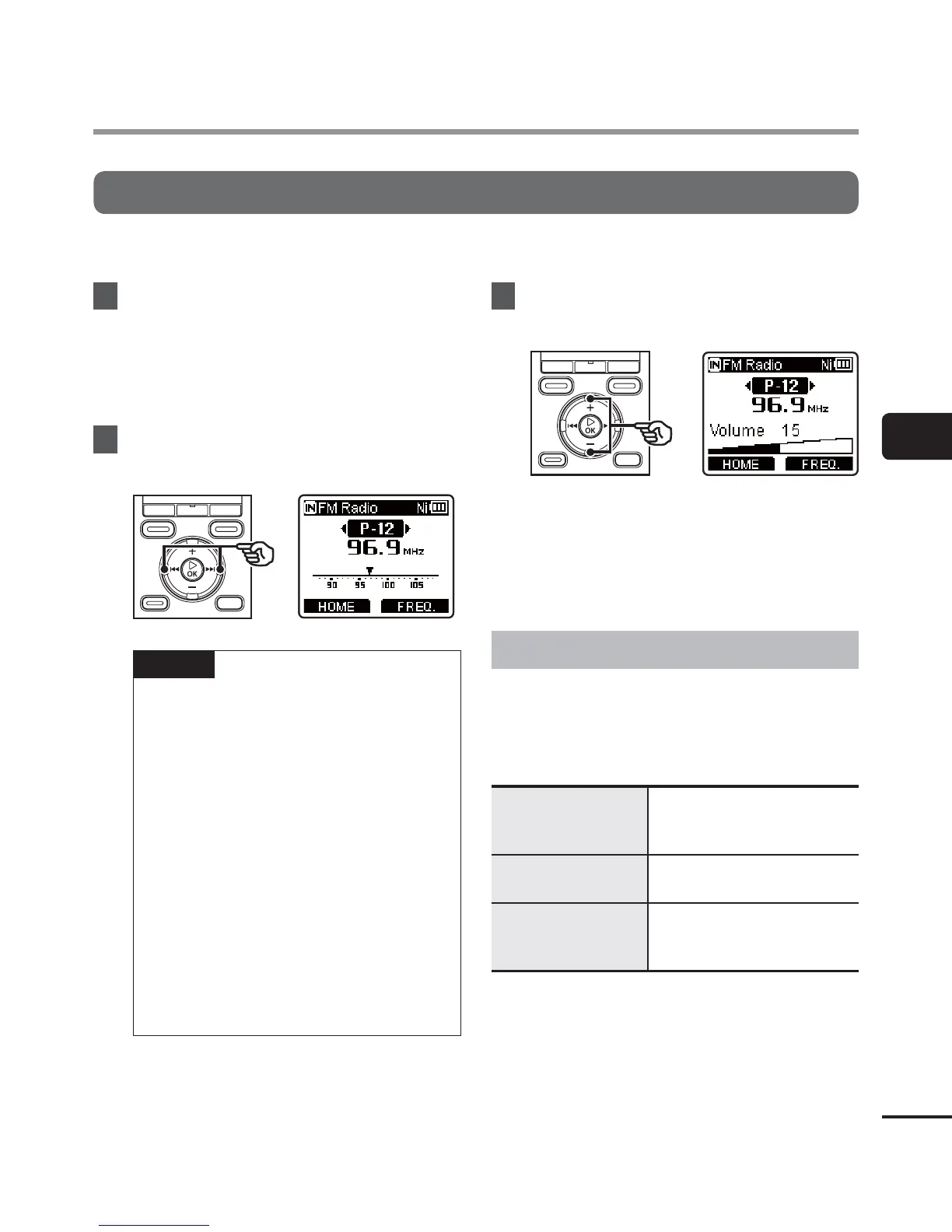 Follow the steps below to listen to stereo FM radio on the voice recorder.