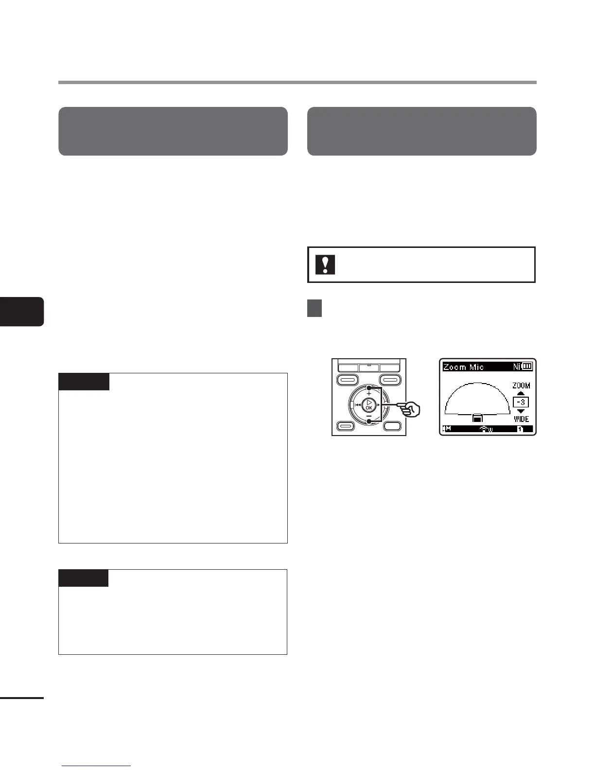 Olympus WS-823 - Setting the Recording Mode [Rec Mode]; Selecting Microphone Directivity [Zoom MIC]