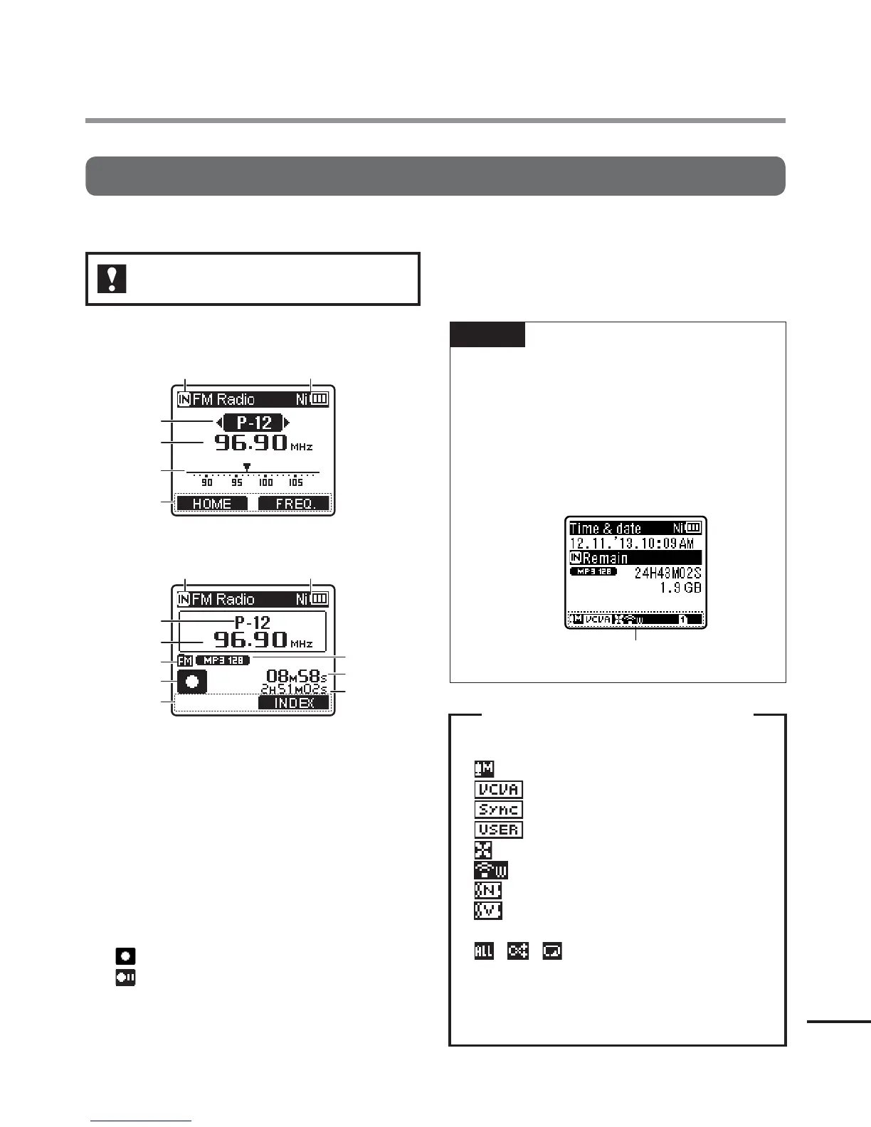 recording time remaining) settings. If