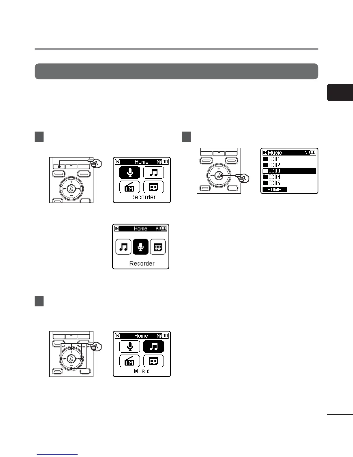 radio* functions. Choose the application you want by selecting one of the voice recorder’s