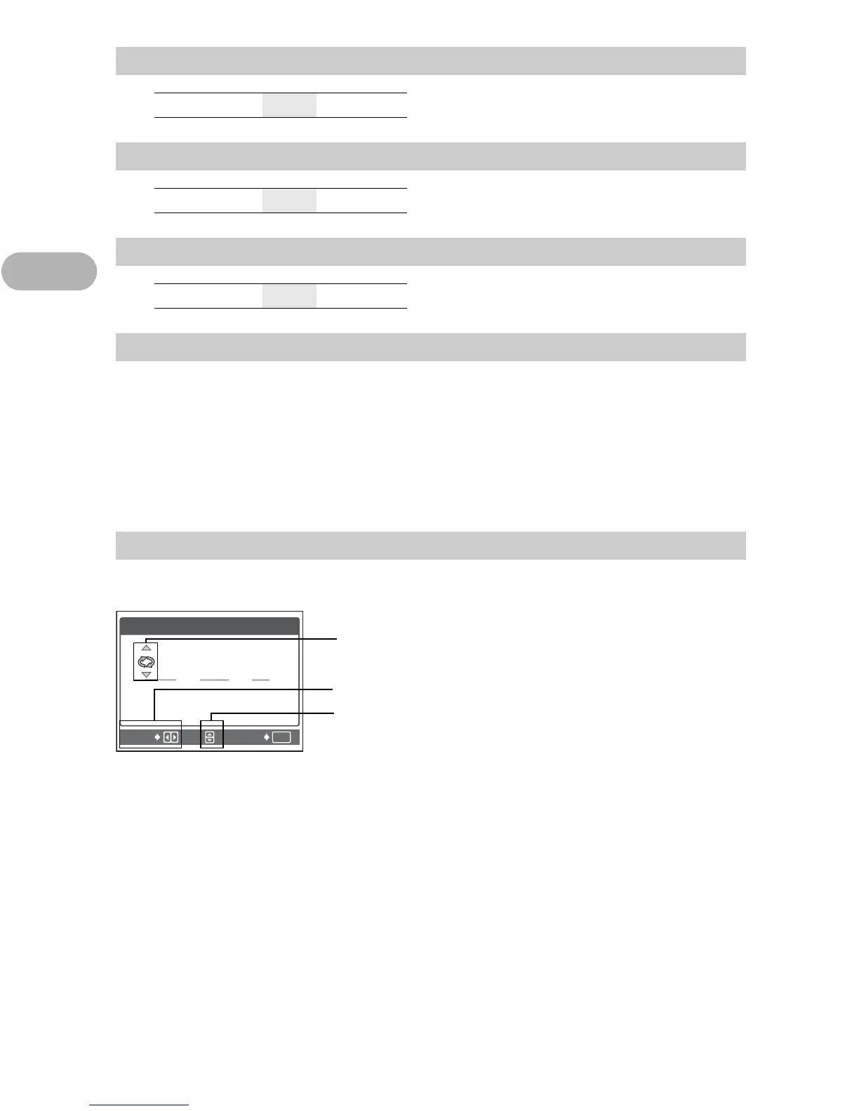 Moves to the previous or next setting.