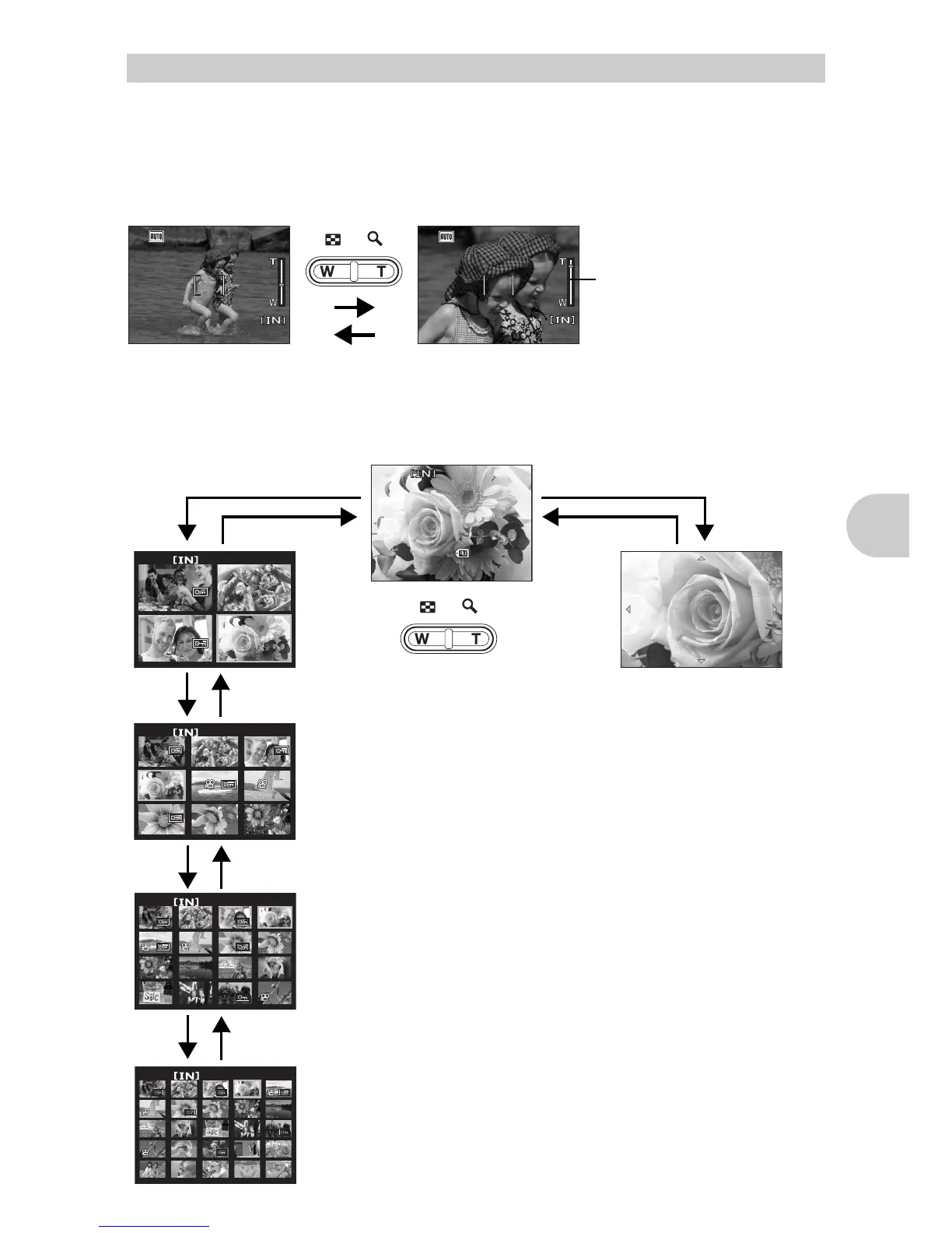 6 Zoom button Zooming in and out while shooting or playing back pictures