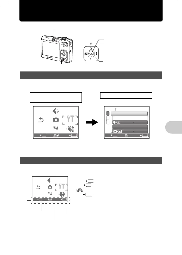 • Select [CAMERA MENU], [PLAYBACK MENU], [EDIT], [ERASE], or [SETUP], and press . The screen