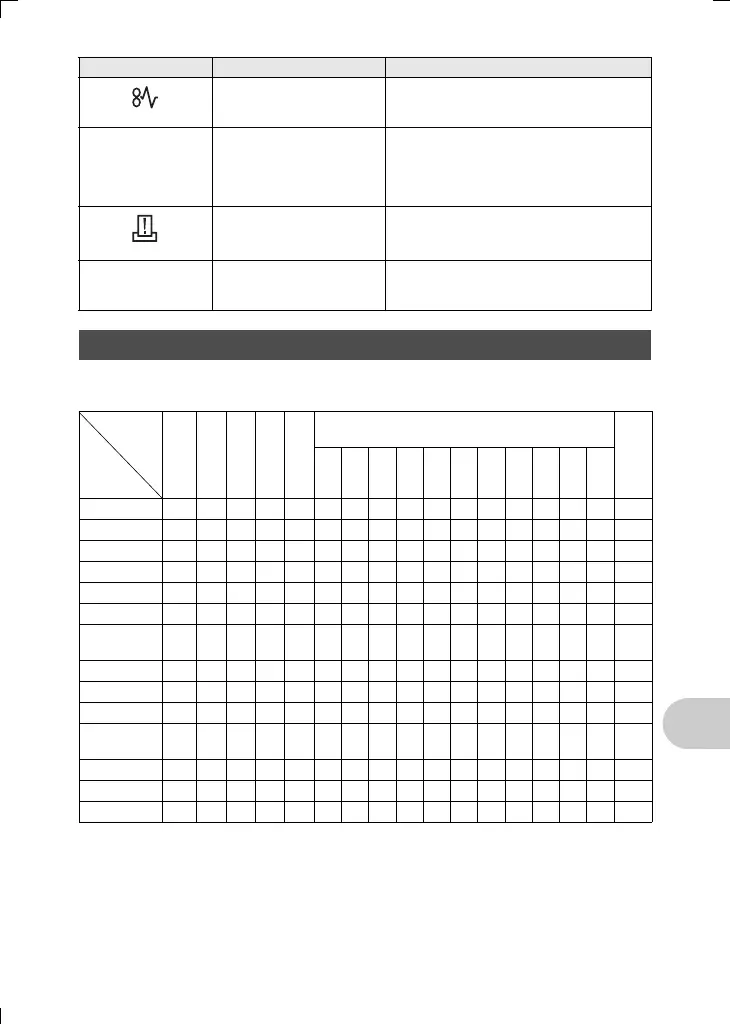 Some functions cannot be set in certain shooting modes. For more details, refer to the table below.