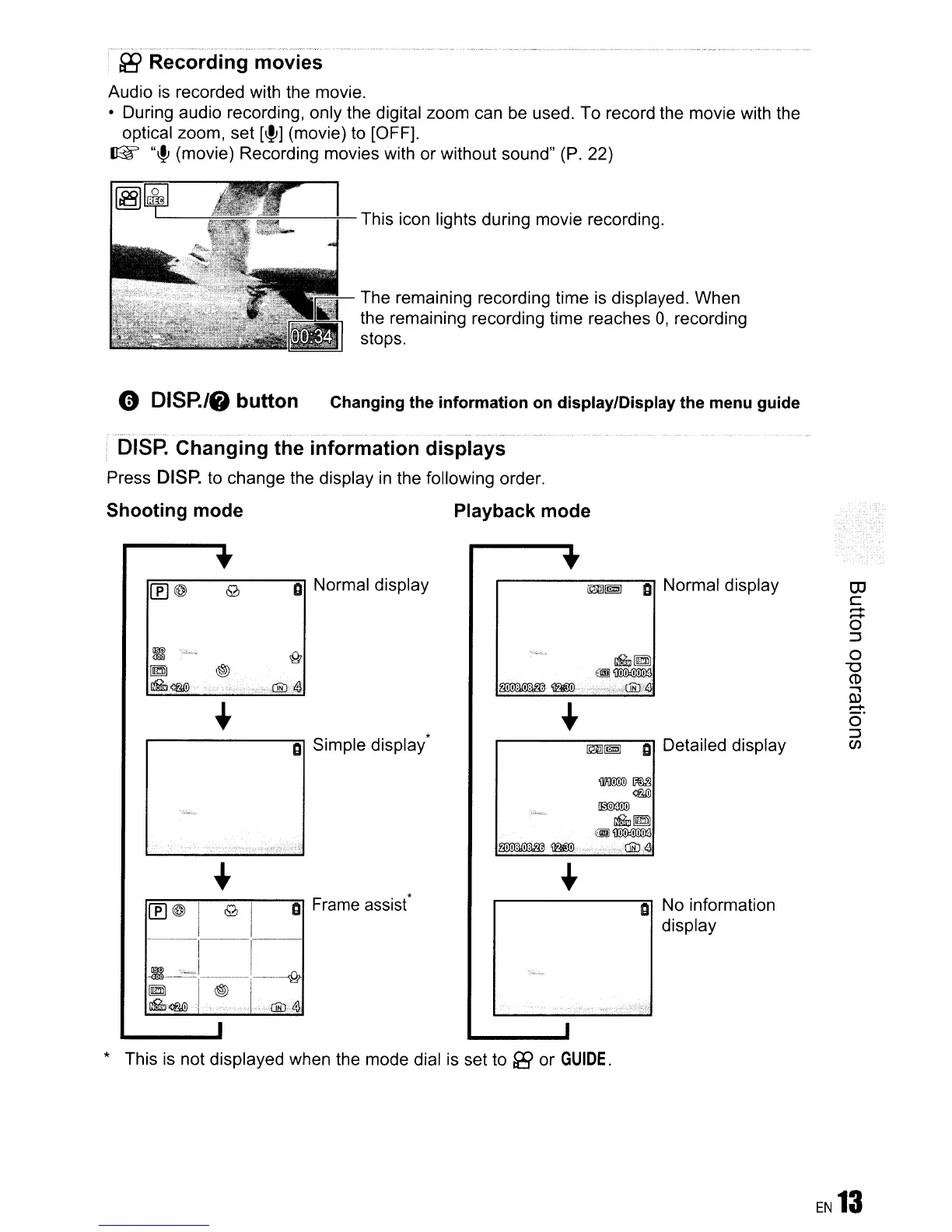 • During audio recording, only the digital zoom can be used. To record the movie with the