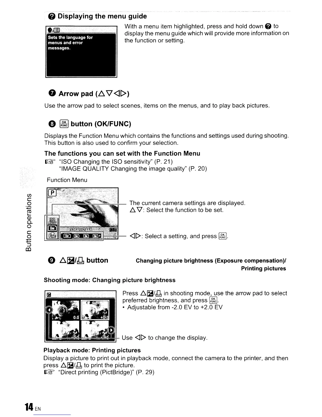Changing picture brightness (Exposure compensation)1