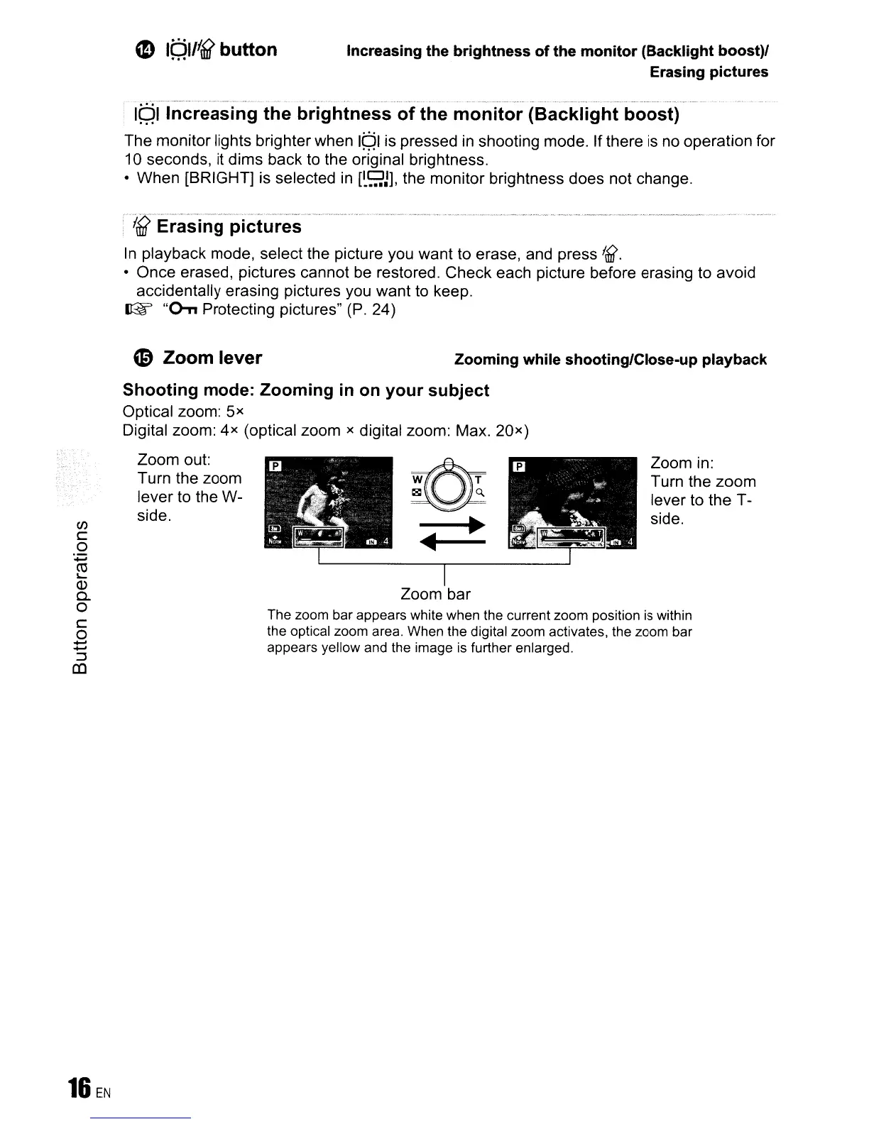 Zooming while shooting/Close-up playback