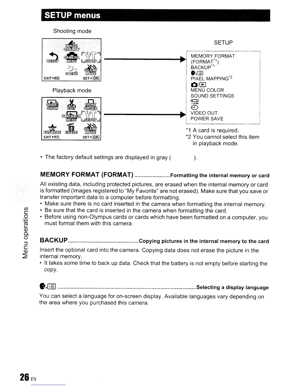 SETUP menus