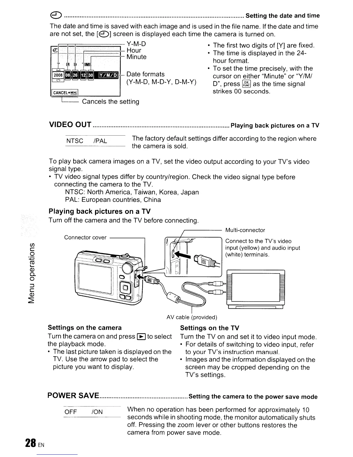 To play back camera images on a TV, set the video output according to your TV's video