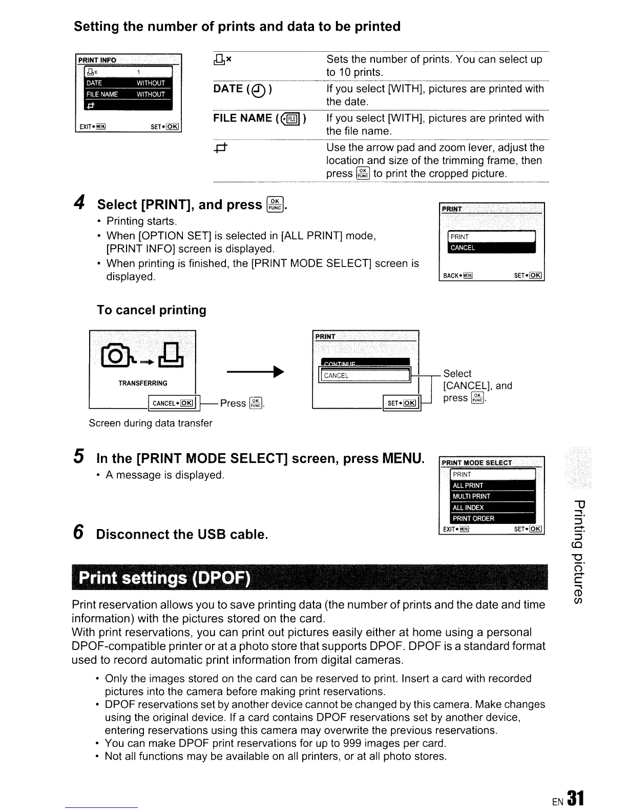 Print settings (DPOF)