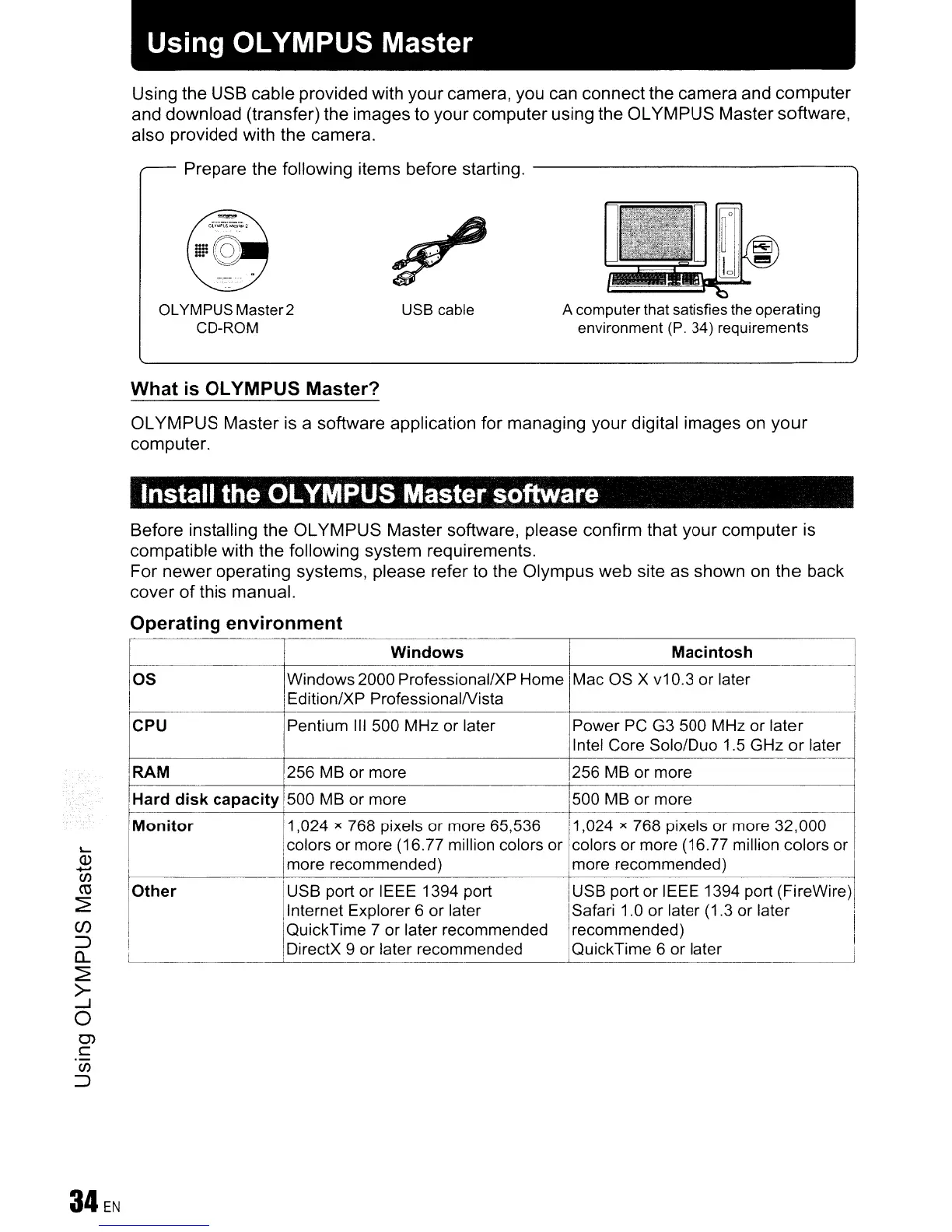 Before installing the OLYMPUS Master software, please confirm that your computer is