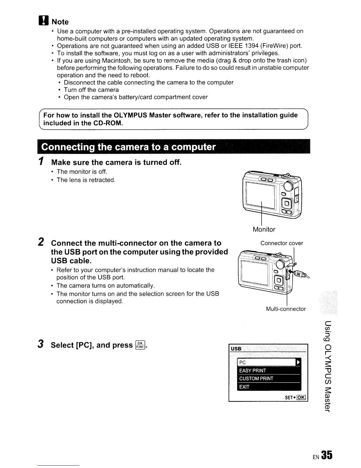 For how to install the OLYMPUS Master software, refer to the installation guide I