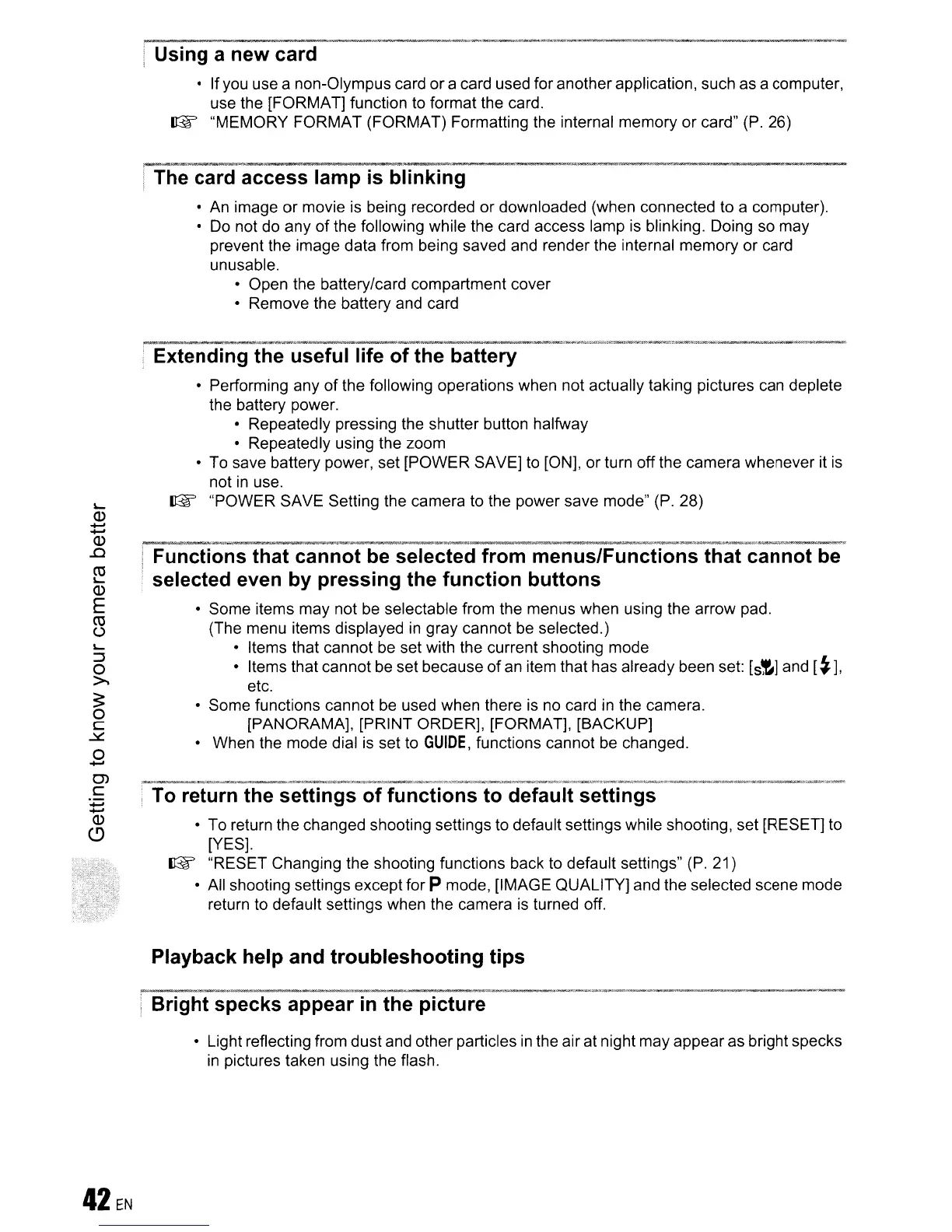 • Ifyou use a non-Olympus card or a card used for another application, such as a computer,