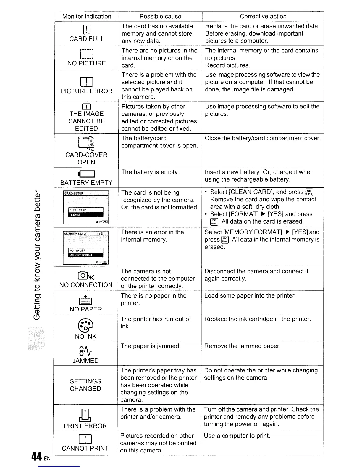 been removed or the printer settings on the camera.