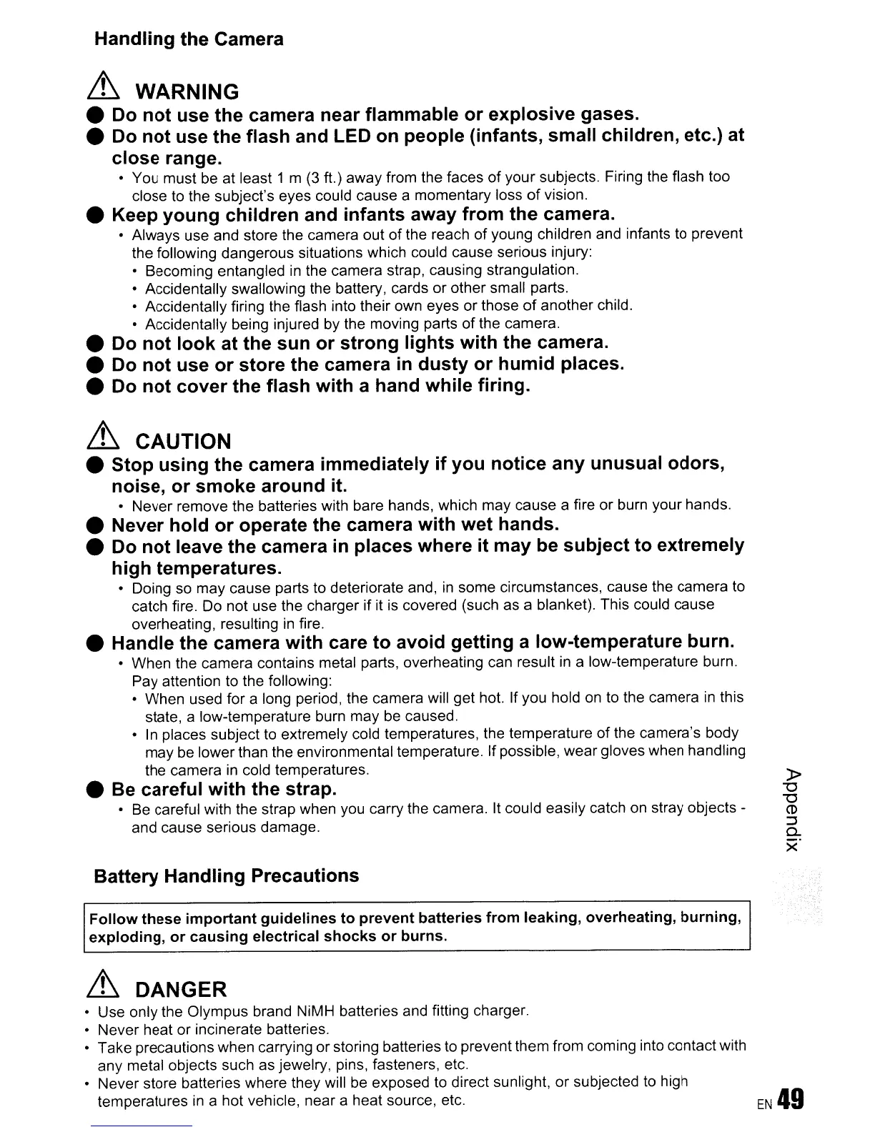 • Use only the Olympus brand NiMH batteries and fitting charger.
