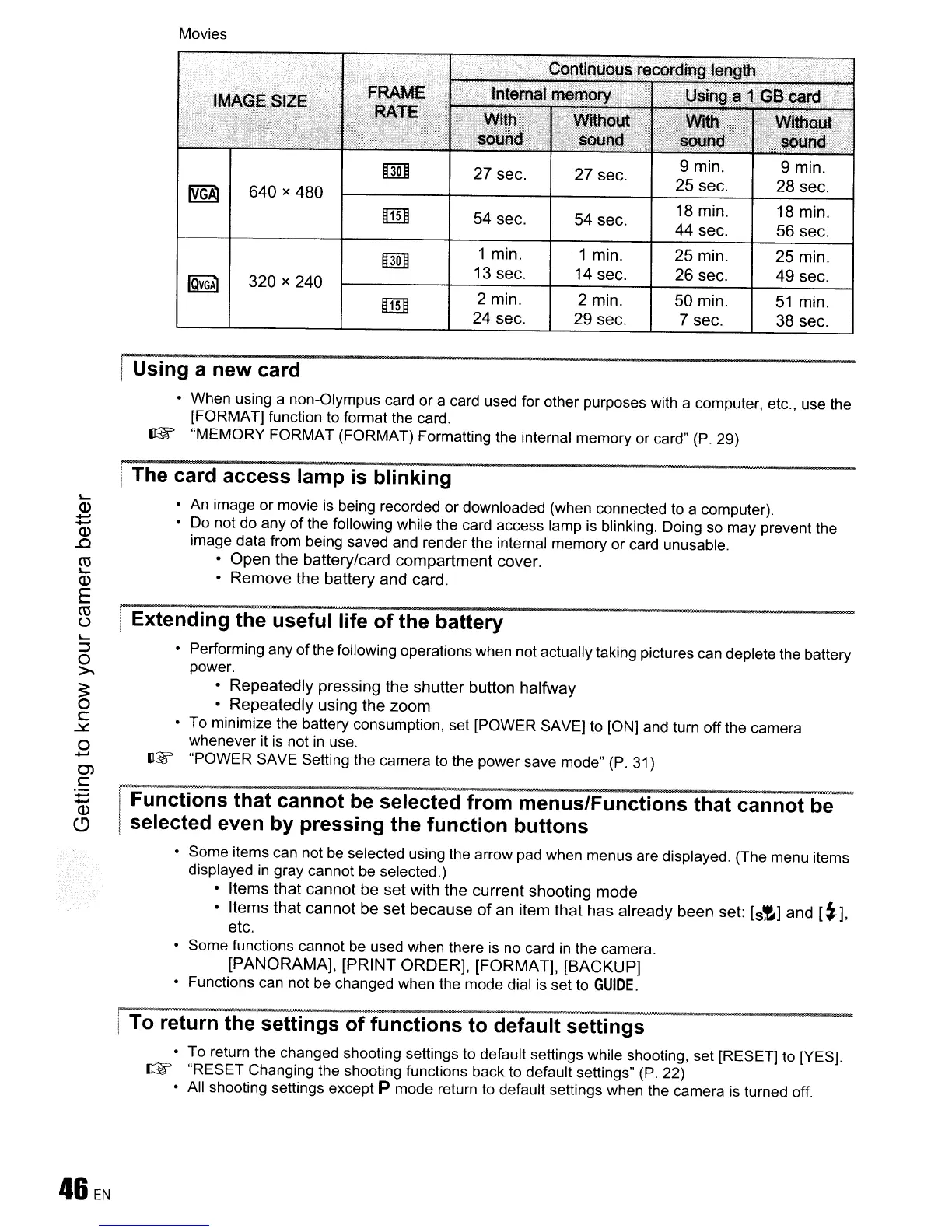 "RESET Changing the shooting functions back to default settings" (P. 22)