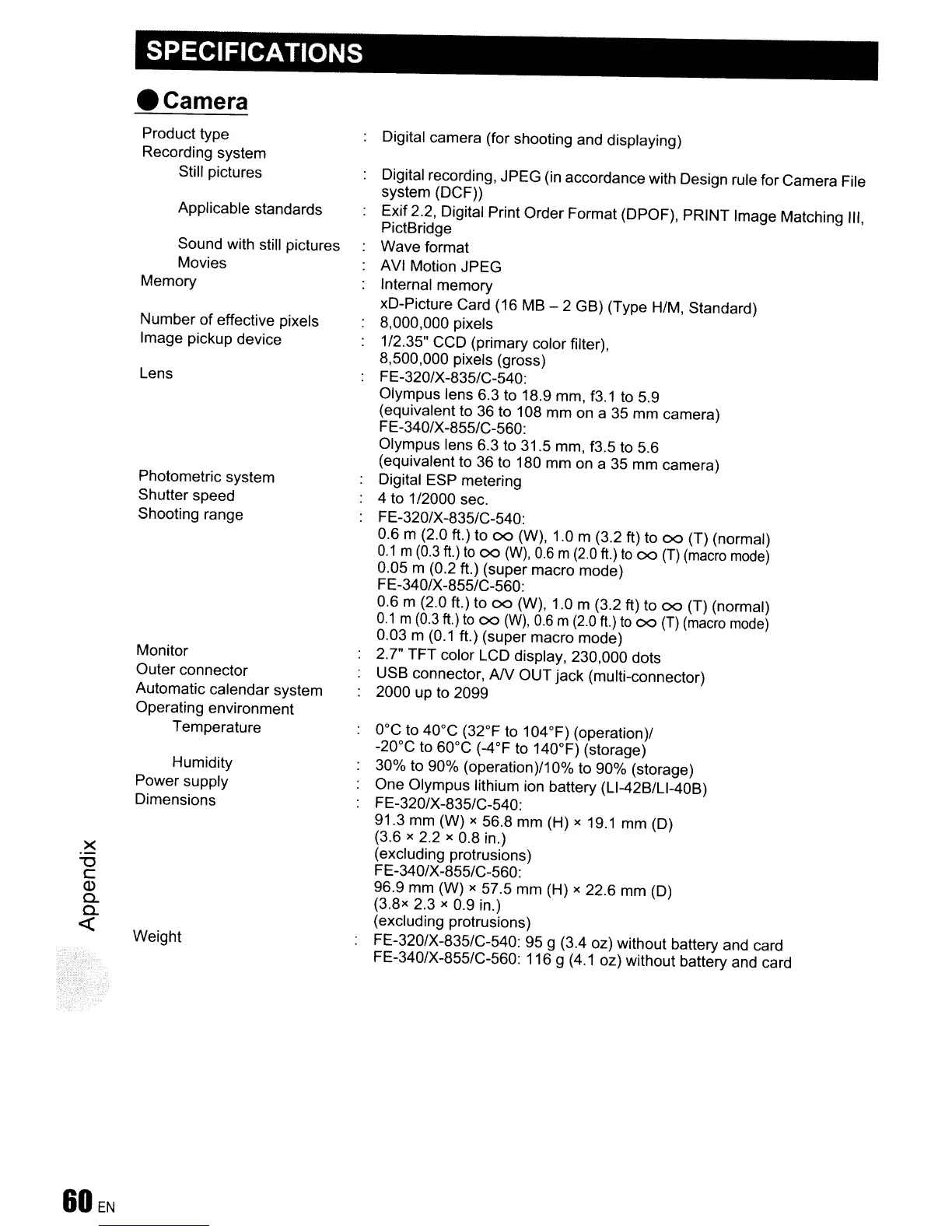 FE-320/X-835/C-540: 95 g (3.4 oz) without battery and card