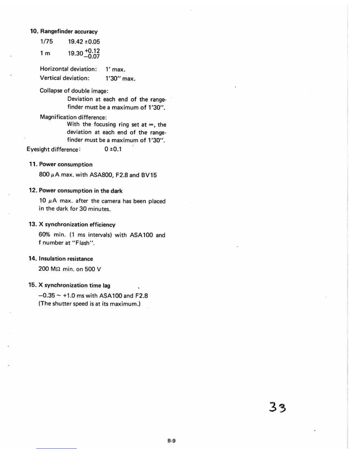 Olympus XA - Rangefinder Accuracy; Power Consuption; X Synchronization Efficiency; Insulation Resistance
