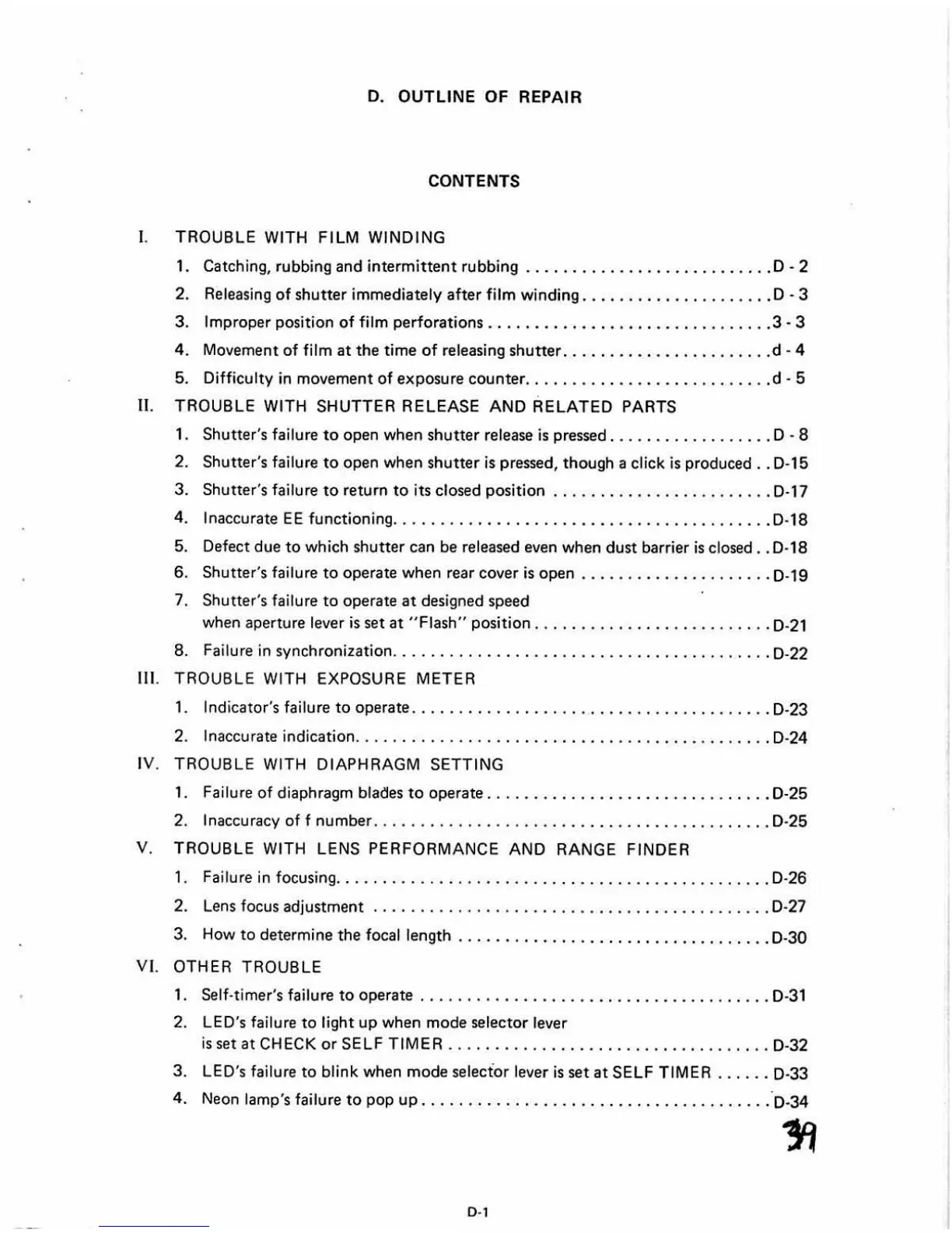 Olympus XA - Outline of Repair; Contents
