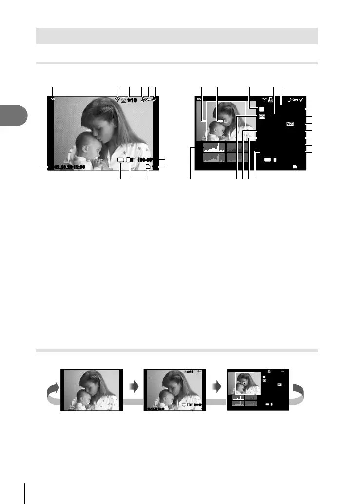 The INFO button can be used to choose the information displayed during playback.