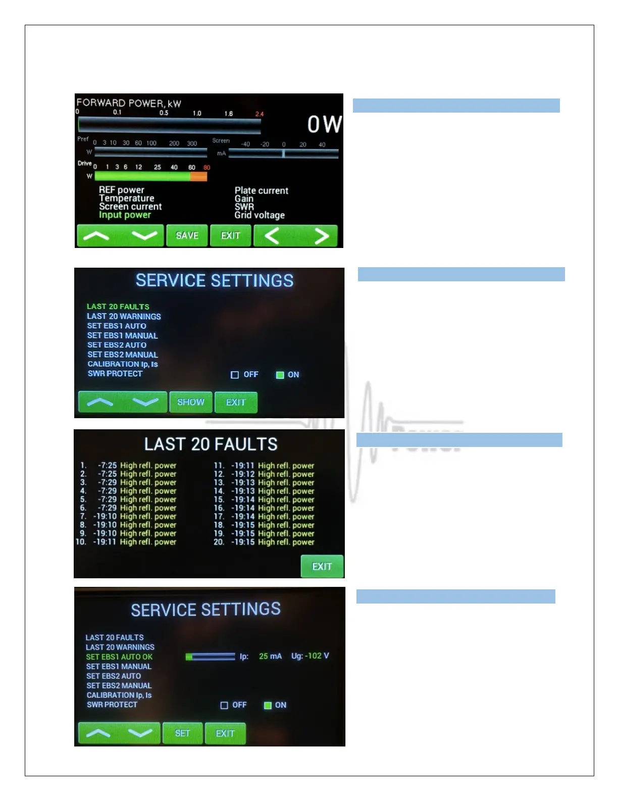 Now we are in the SERVICE settings mode.
