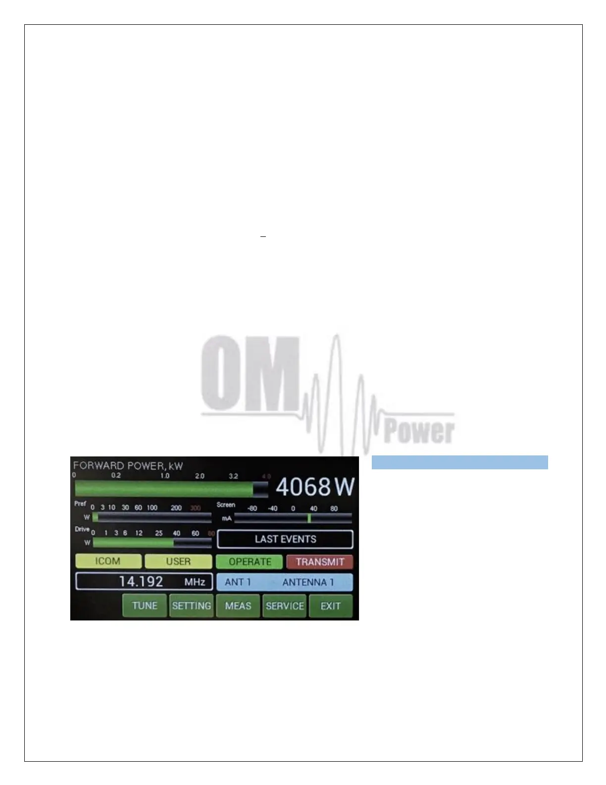 Notice 2: If you use the PA with the output power adjusted lower than the maximum settings, Screen