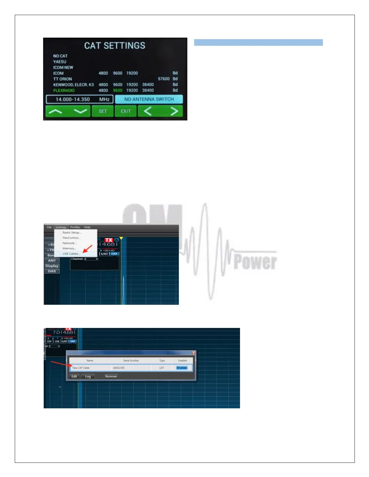Activate Smart SDR and from the Flex SSDR main screen choose Settings then USB Cables