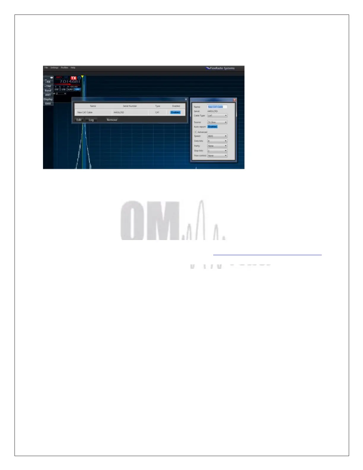 Close both windows. The OM2501A will now follow the Band and Frequency changes on the Flex