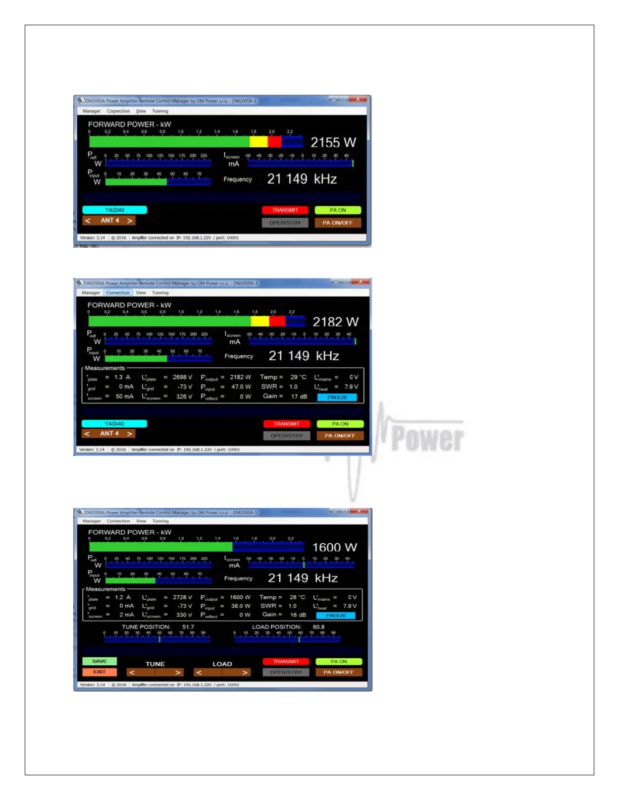 Fine tune screen: It is possible to retune the PA TUNE and LOAD remotely (See page 31).