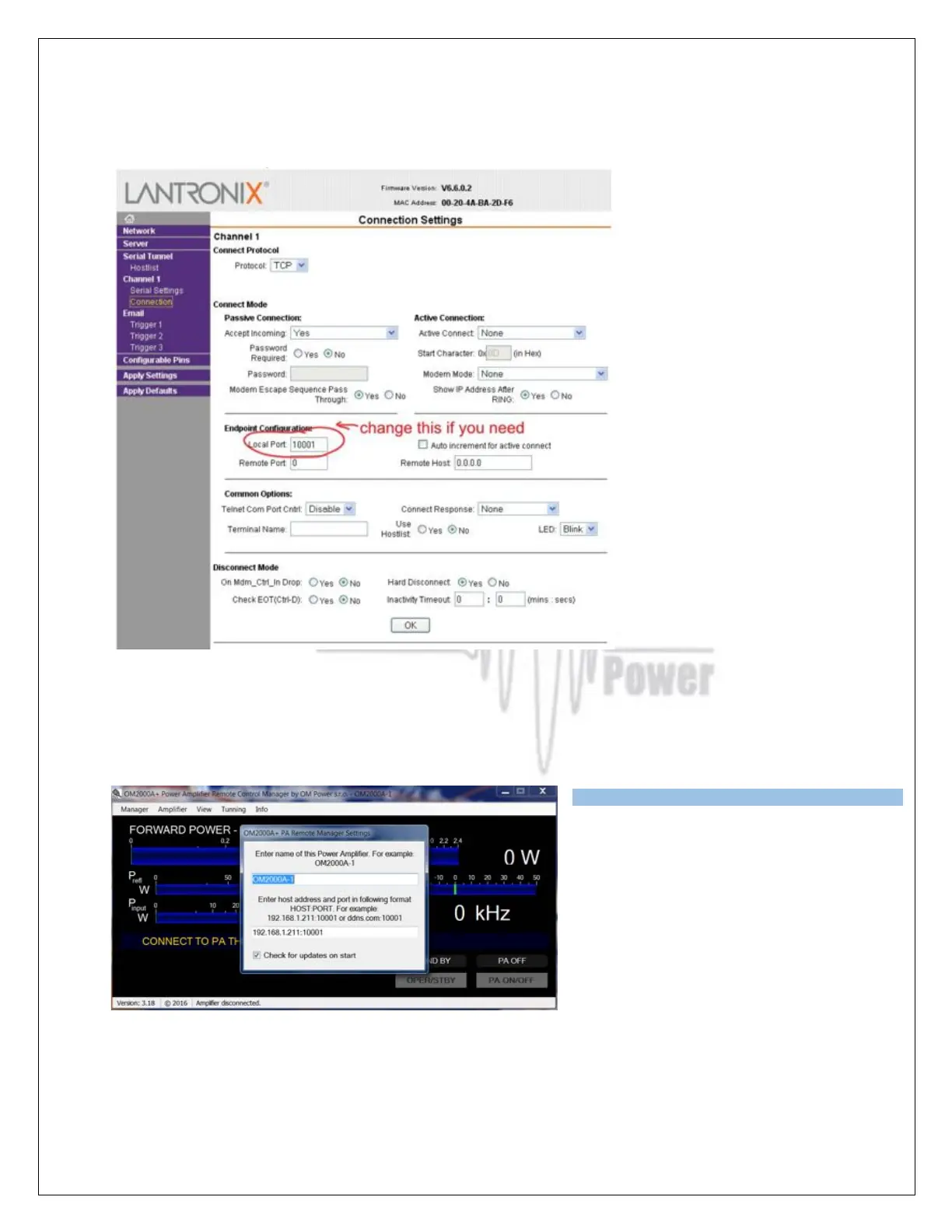 If necessary it is also possible to change the OM2501A local Port number. Make any changes as