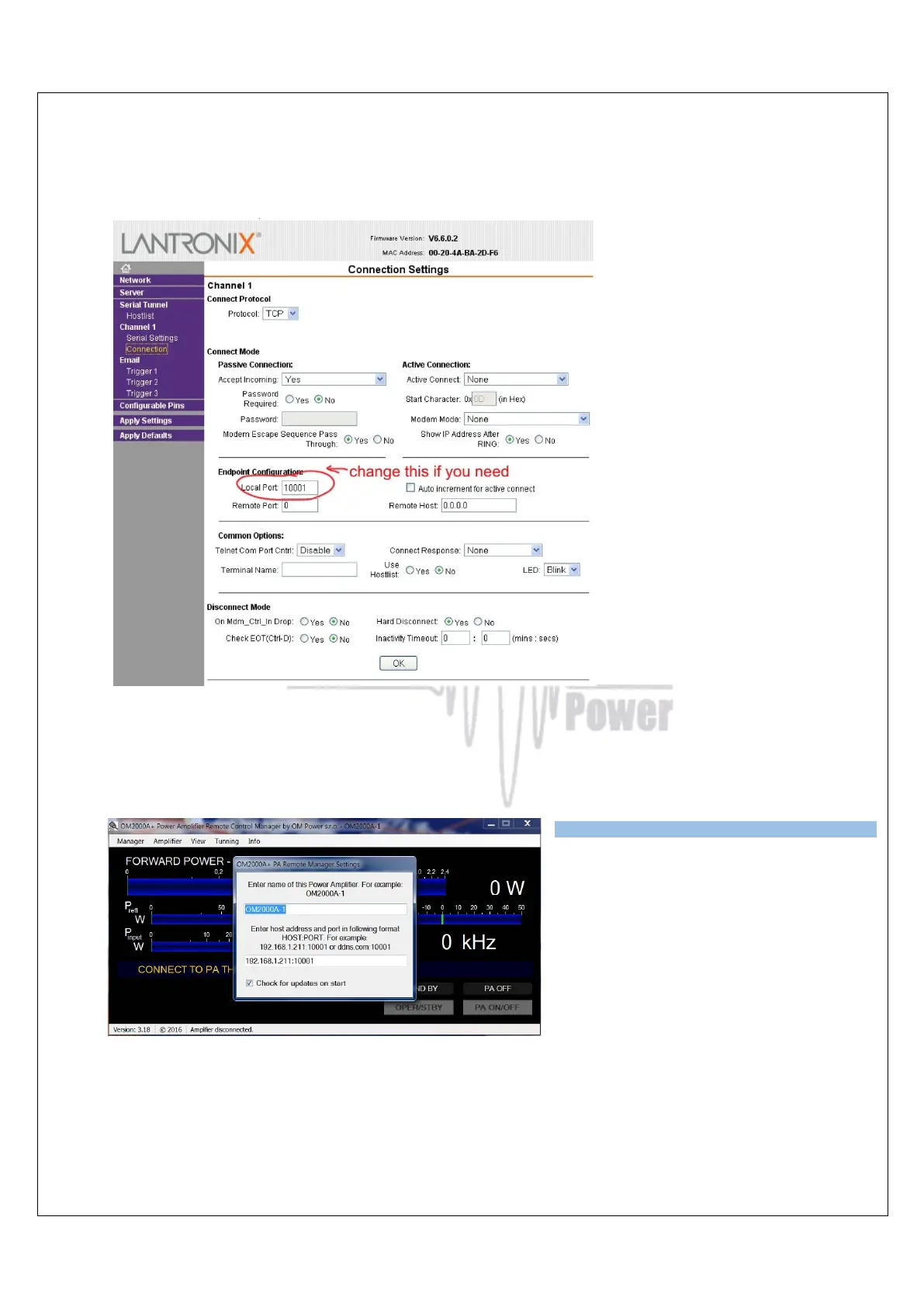 If necessary it is also possible to change the OM4001A local Port number. Make any changes