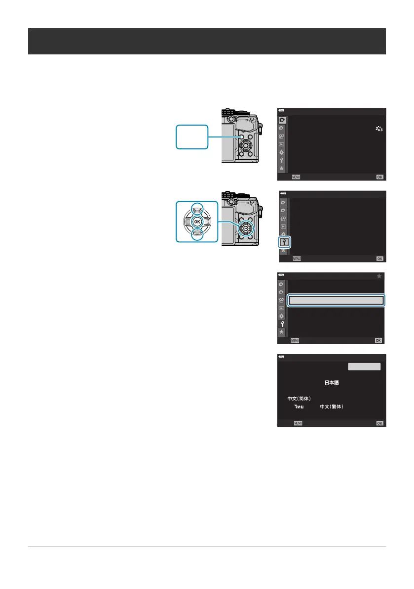 Highlight the desired language using the FGHI buttons
