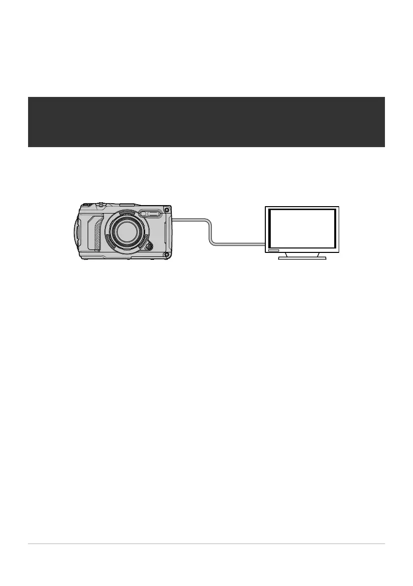 Pictures can be displayed on televisions connected to the camera via HDMI. Use the television to