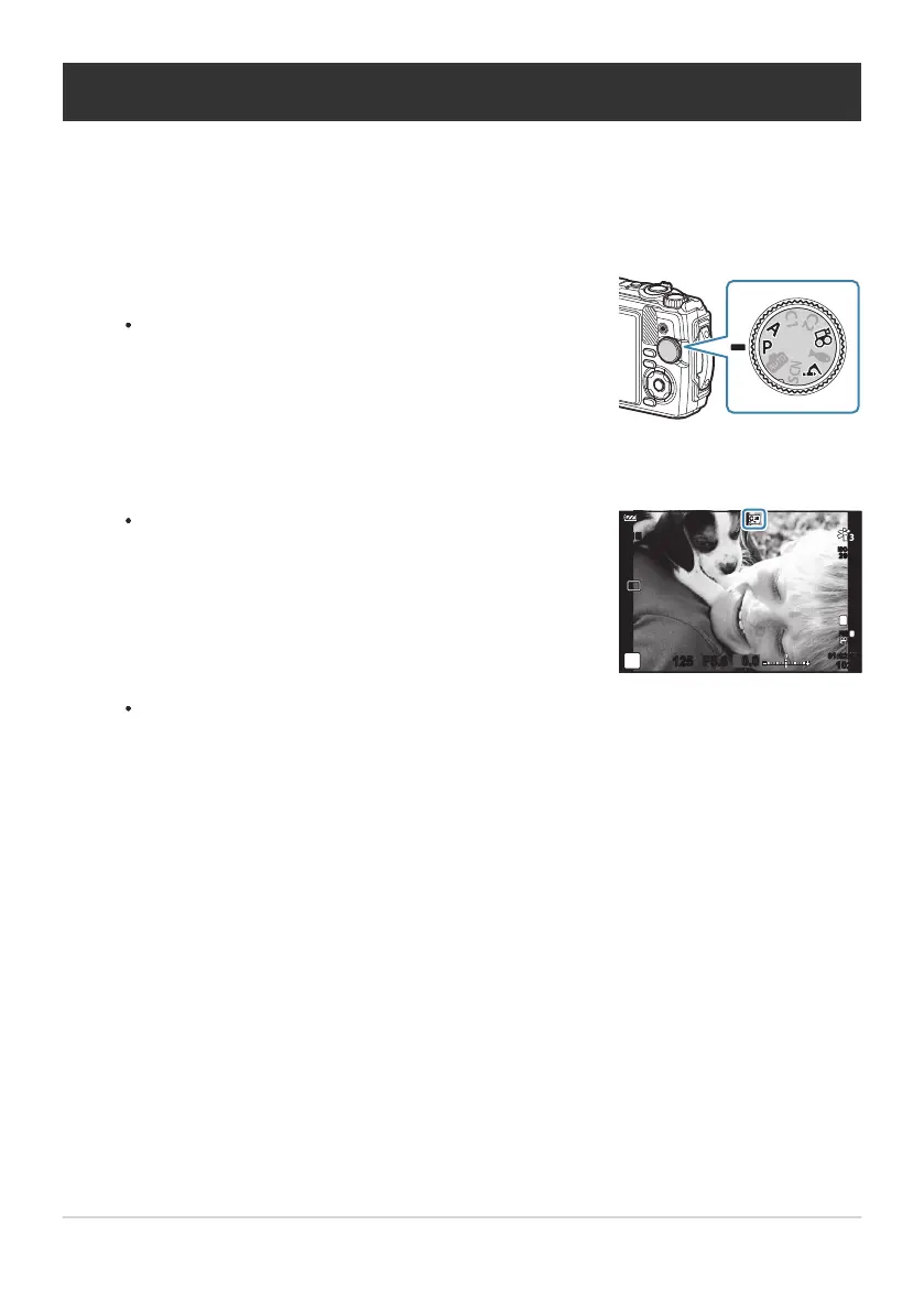 If the mode dial is rotated to P, A, or n, press H.