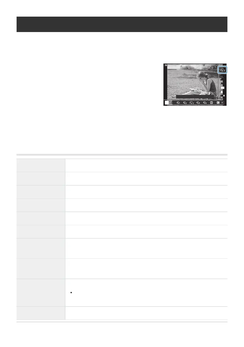 and other parameters (P.123). Changes to parameters are stored for each picture mode separately.