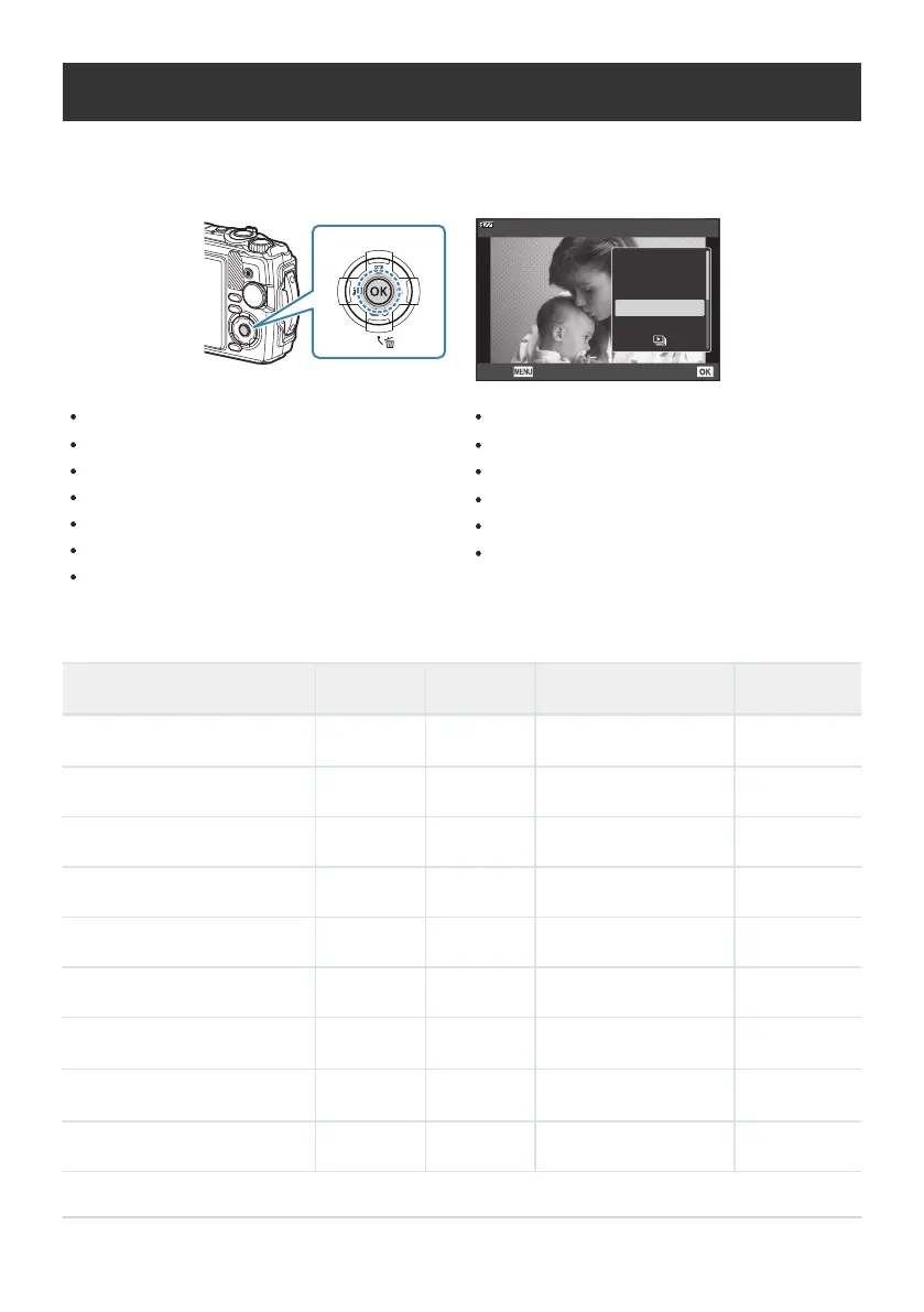 The playback direct menu can be displayed by pressing the OK button during playback. Highlight the