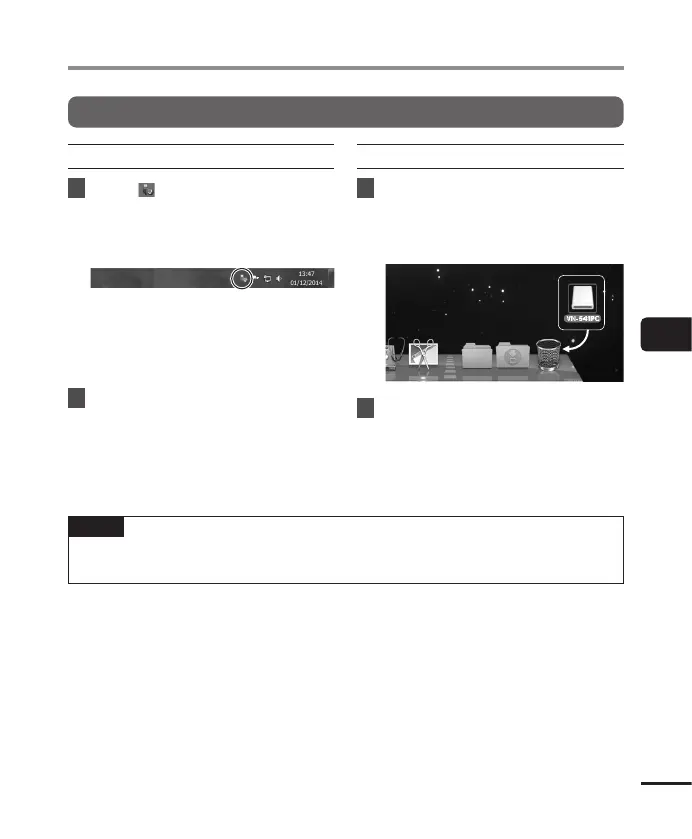 • To prevent the risk of data damage, never disconnect the voice recorder from the USB