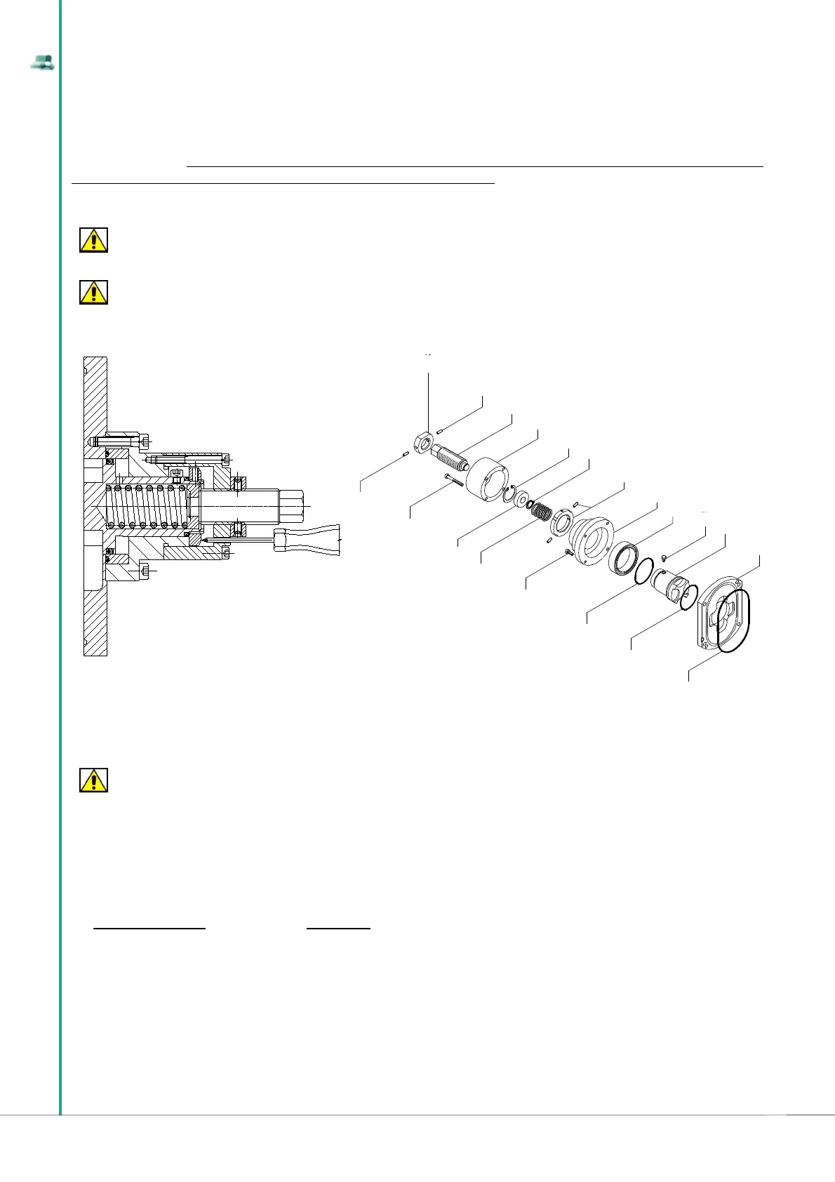 The mechanical safety valve is fi tted directly onto the front cover of the pump (pump body cover) and its purpose is to intercept pressure peaks of the