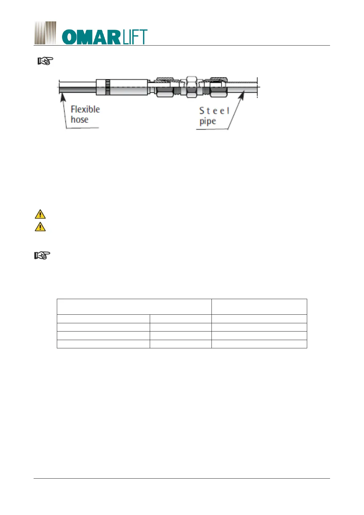 When a flexible hose is used, please note that: