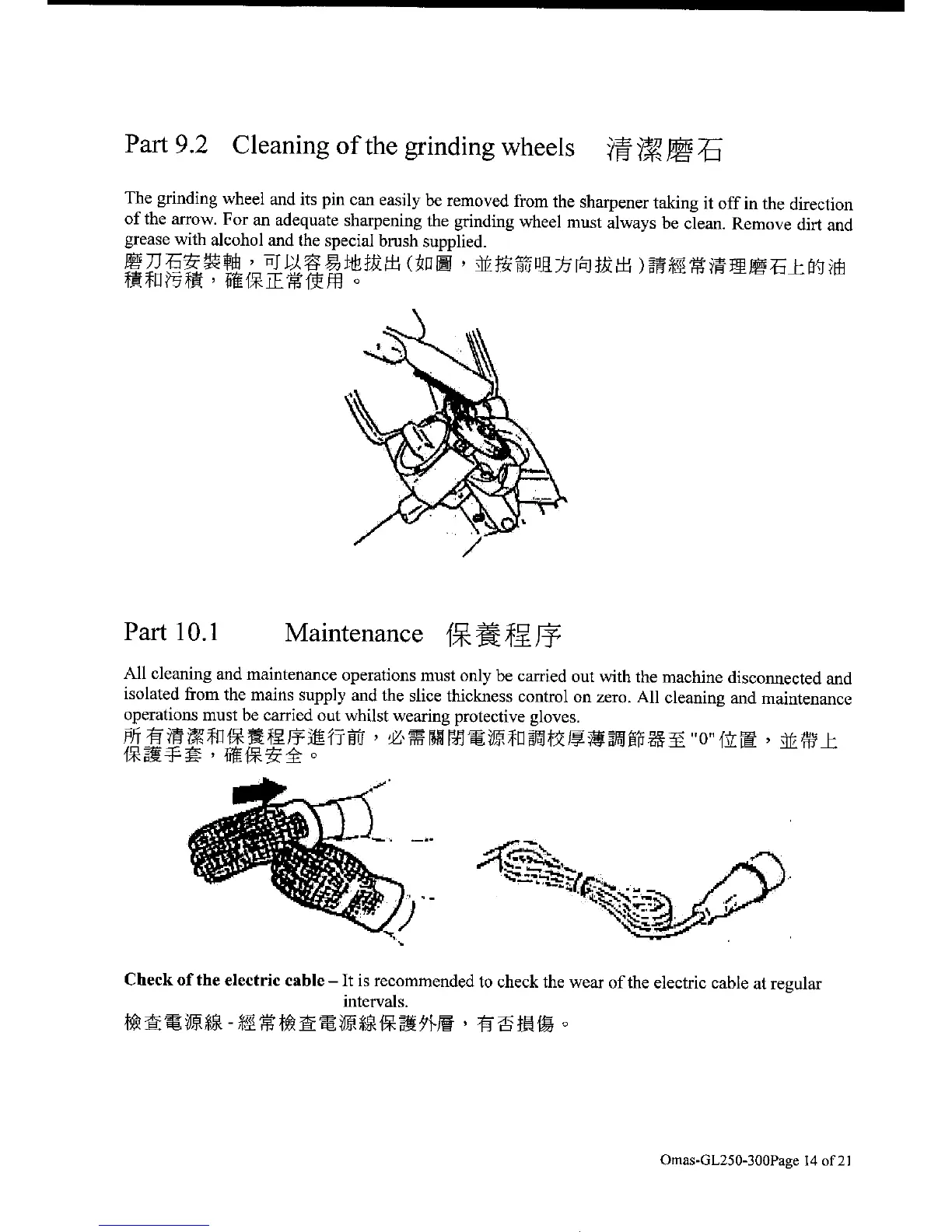 OMAS GL-250 - Cleaning of the Grinding Wheels; Maintenance