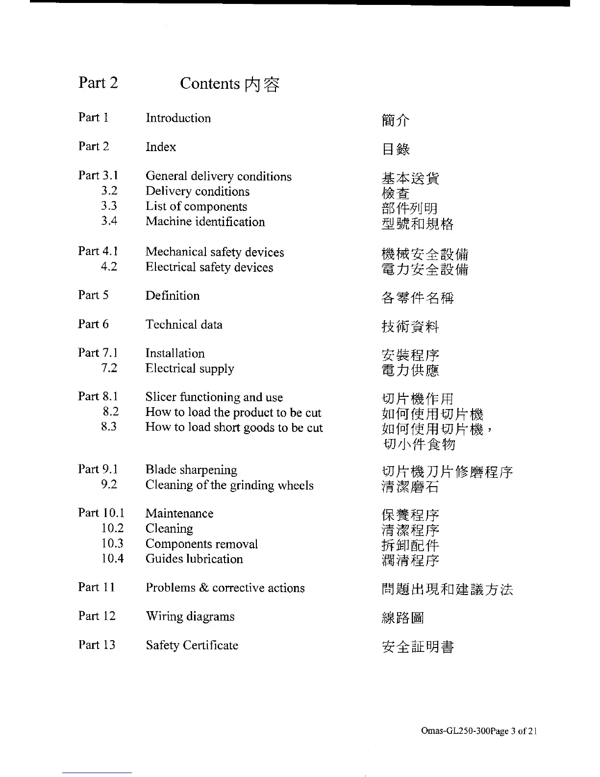 OMAS GL-250 - Contents