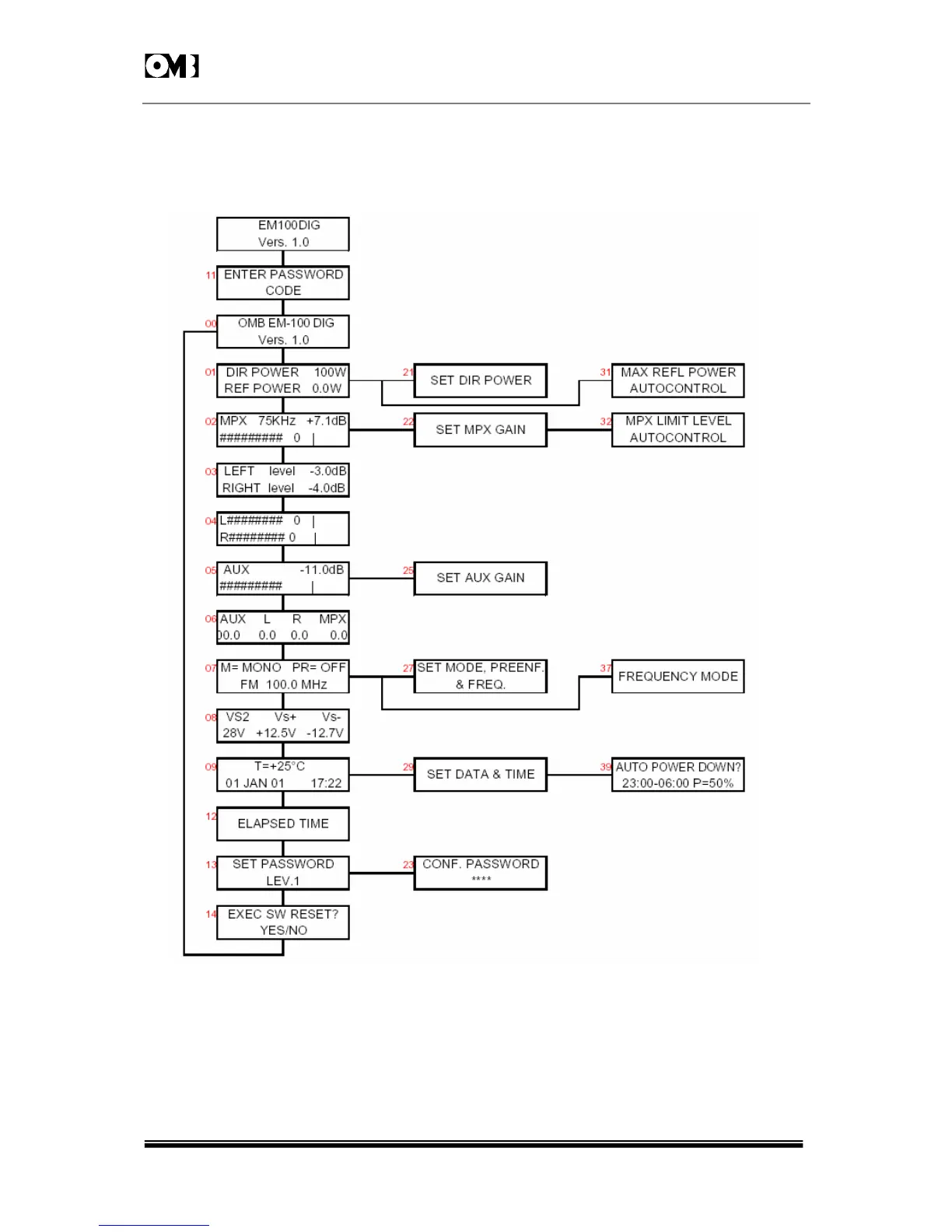 OMB EM 100 DIG - Sequence of Menus Displayed by Screen Hyerarchical Tree