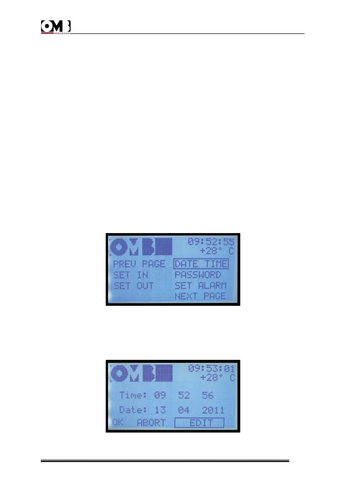 44) The date and time settings screen will appear: