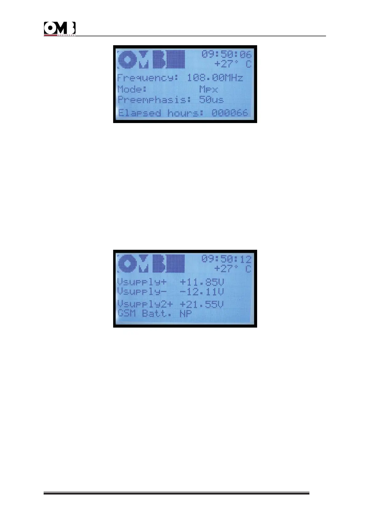 • Mode: indicates Mono, Stereo, Mono L+R, or Mpx mode (in the example, Mpx).
