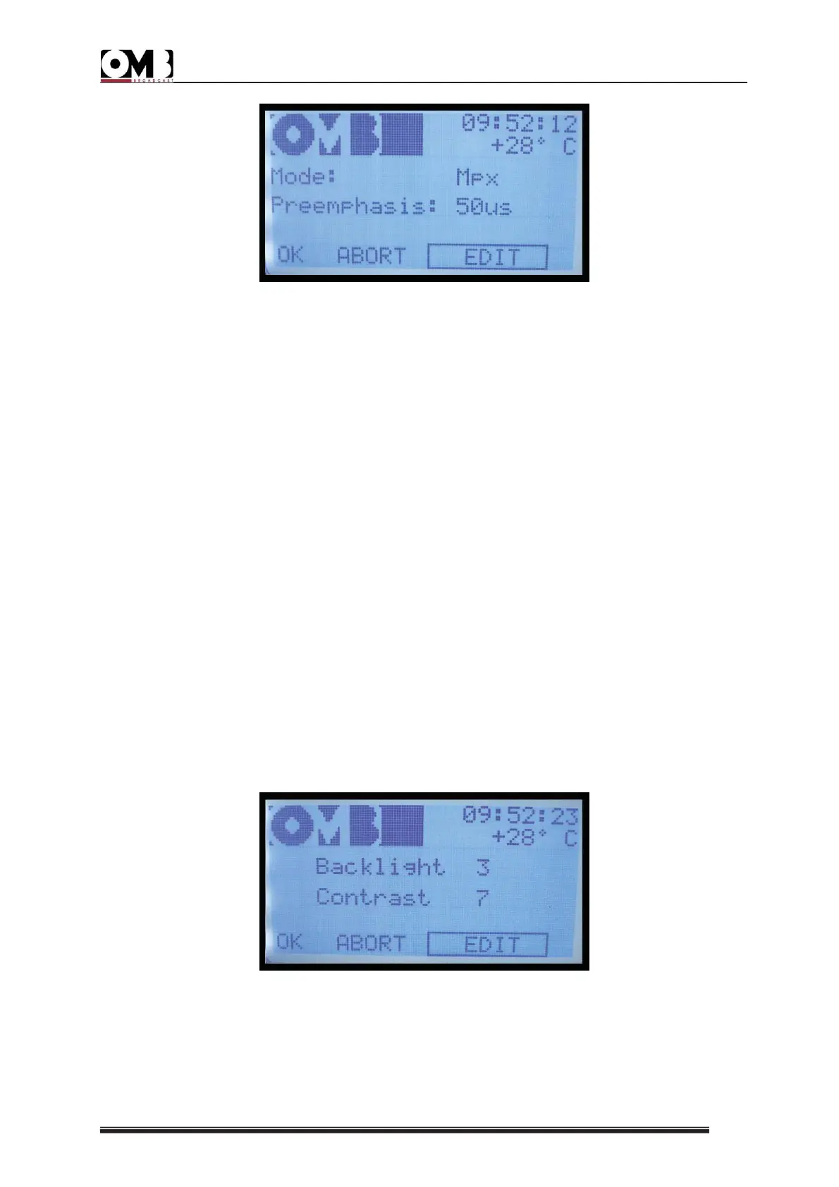 4) Using the knob, select OK to save the settings, EDIT to make further changes, or ABORT to