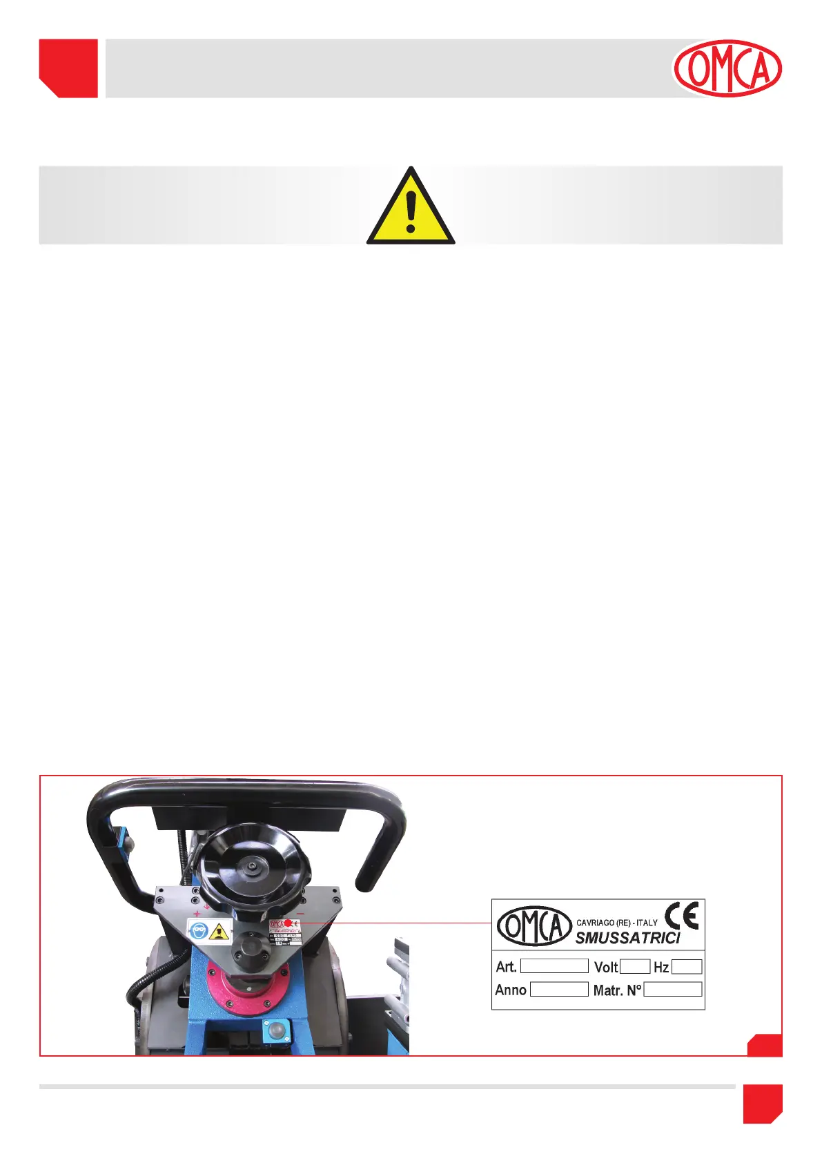 Phone: +39 0522 943502 / +39 0522 943503 - Website: www.omcasrl.it - E-mail: info@omcasrl.it