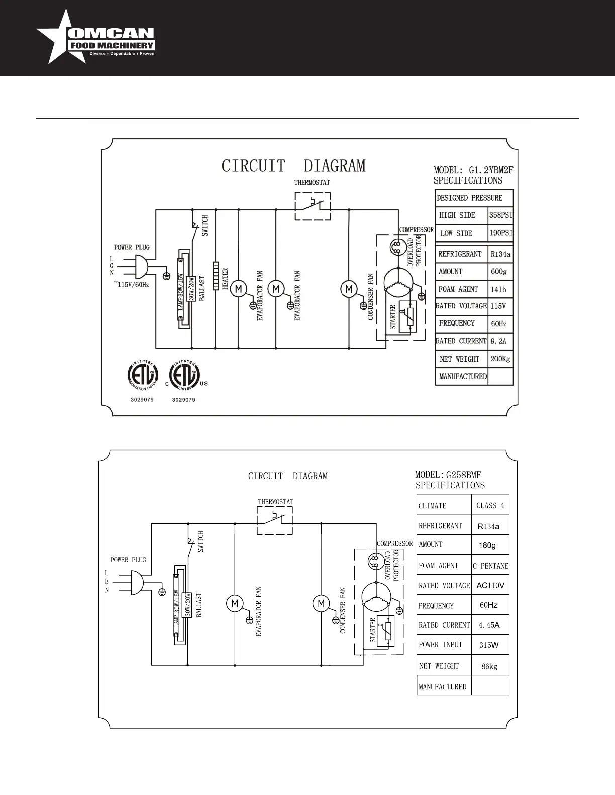 Omcan G258BMF - Electrical Schematics; Model G1.2 YBM2 F; Model G258 BMF